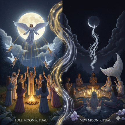 Full moon and new moon rituals involve gatherings where participants engage in practices such as meditation, intention-setting, or releasing rituals. These gatherings help participants connect with the lunar energy, providing a space for reflection, manifestation, and gratitude.